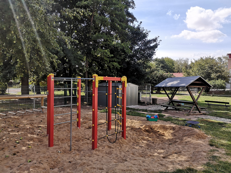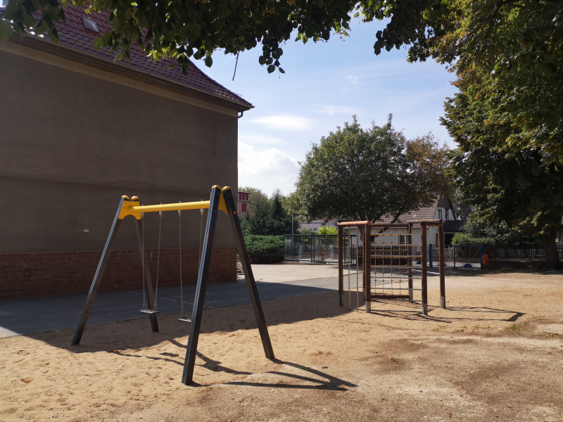 Neben dem Unterricht sind natürlich auch die Pausen wichtig, daher wurde unser Schulhof ansprechend gestaltet und mit Spielgeräten ausgerüstet. Ganz neu laden ein Schuppen voller Spielzeug und zwei Fußballtore zum Spaß haben und toben ein. Außerdem dürfen wir freundlicherweise den Spielplatz von Langeneichstädt mit einem Klettergerüst und einem Karusell nutzen. ![]()